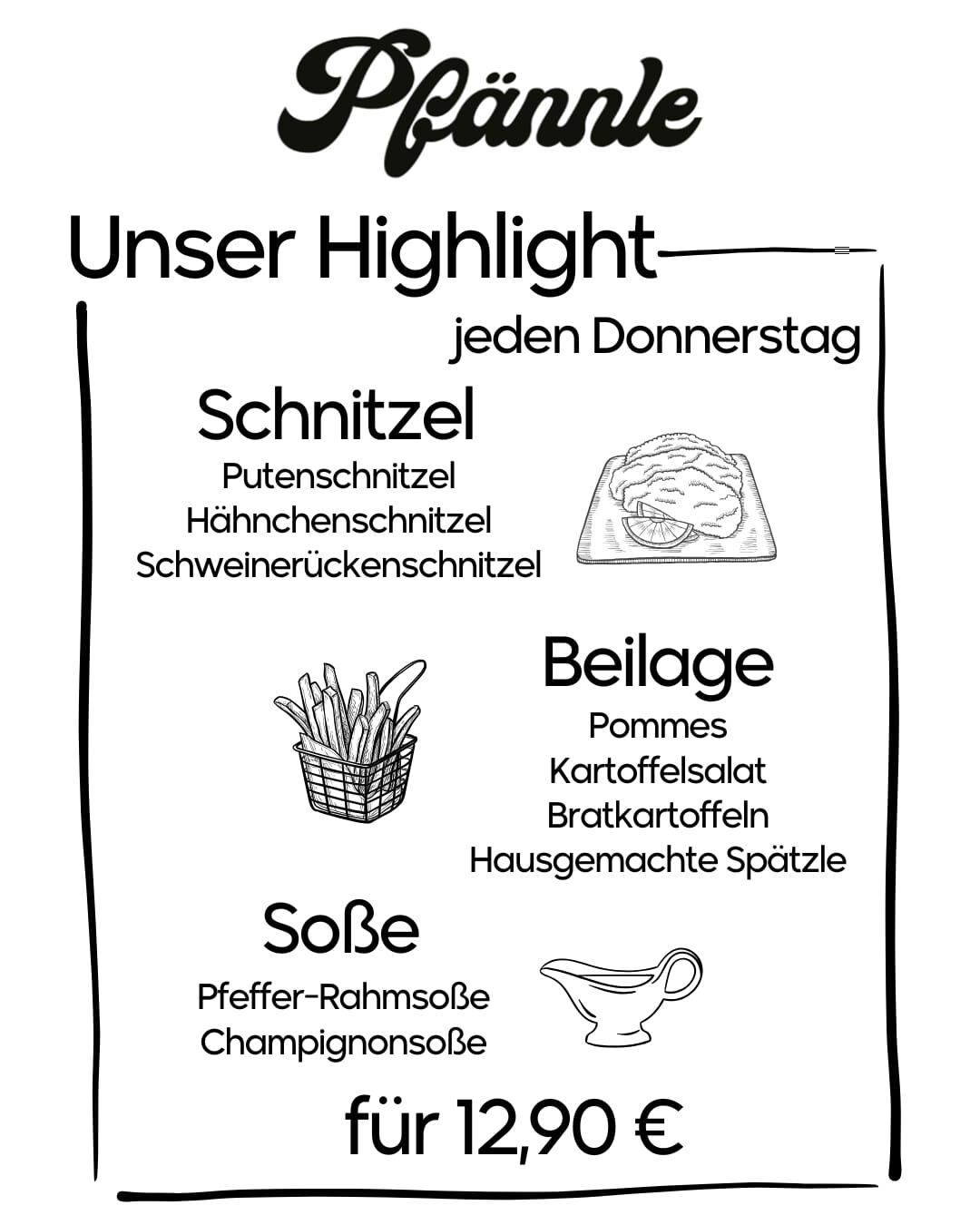 Jeden Donnerstag gibt es bei uns jetzt leckere Schnitzel für nur 12,90 €!!!